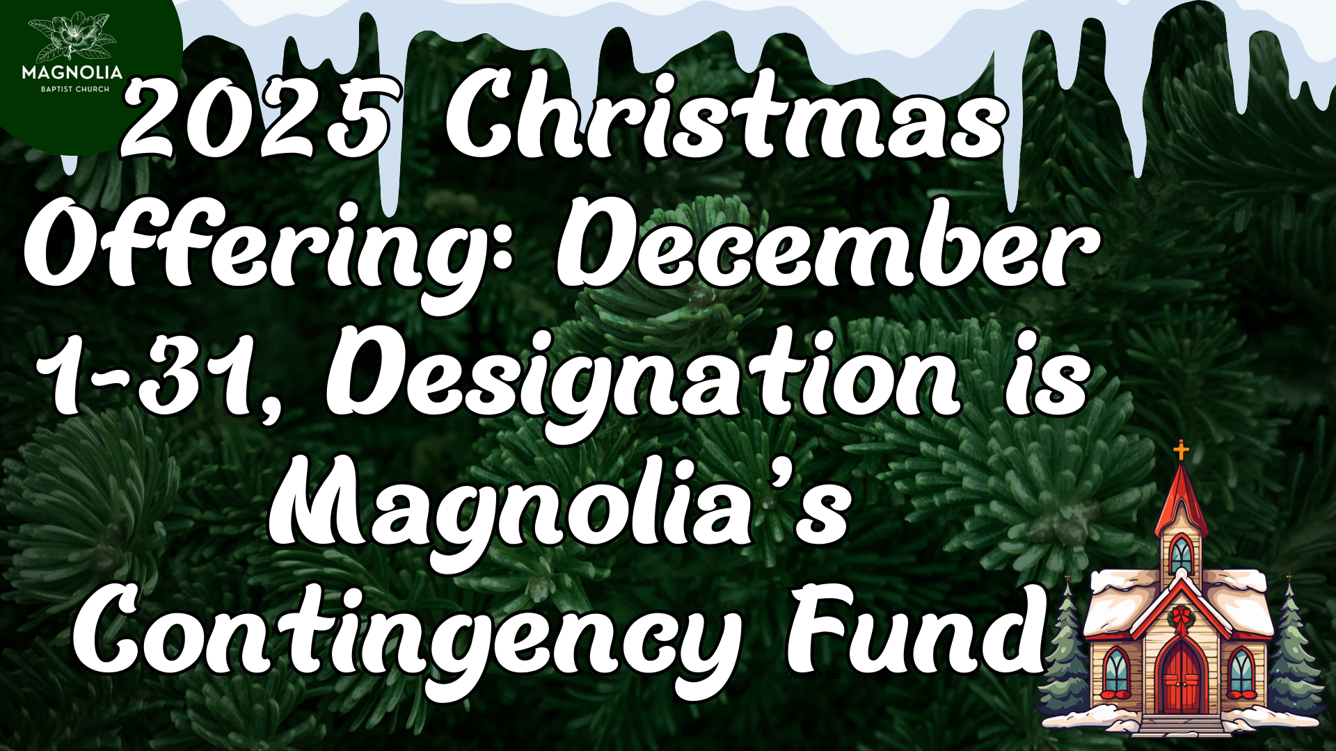 You will find Magnolia to be a church of opportunities. Times for worship, Bible study, music, discipleship training and fellowship abound in a friendly atmosphere. Furthermore, there will be many opportunities to serve as Magnolia purposes to be a growing church in a growing community.